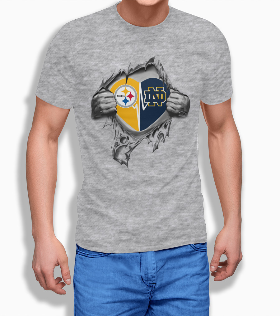 Steelers Notre Dame Heart Steel Tear T-Shirt