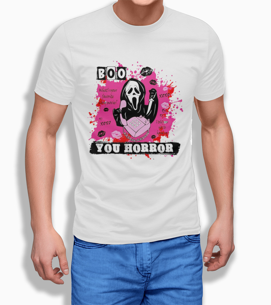 This T-Shirt features Boo You Horror Ghostface What's Your Favorite Scary Movie XOXO I Told You Not to Hang Up Halloween print and is constructed from 100% ring-spun cotton fabric with a weight of 4.19 oz/yd² (142 g/m²). The fabric is pre-shrunk during manufacturing, a process intended to minimize dimensional changes after washing according to standard care instructions. Designed with a regular fit for everyday use, it incorporates double-needle stitching at key seams. Please refer to the size chart for detailed measurements.