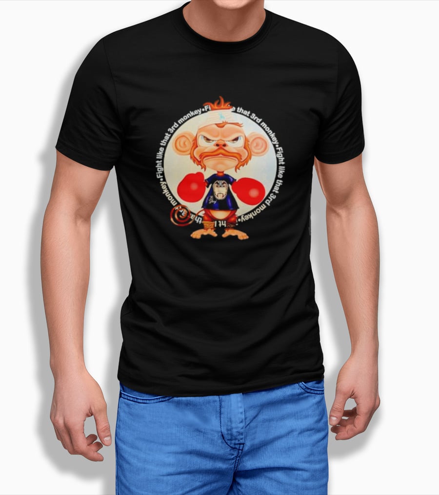 This T-Shirt features Fight Like That 3rd Monkey Angry Boxing Character with Red Gloves and Orange Hair print and is constructed from 100% ring-spun cotton fabric with a weight of 4.19 oz/yd² (142 g/m²). The fabric is pre-shrunk during manufacturing, a process intended to minimize dimensional changes after washing according to standard care instructions. Designed with a regular fit for everyday use, it incorporates double-needle stitching at key seams. Please refer to the size chart for detailed measurements.