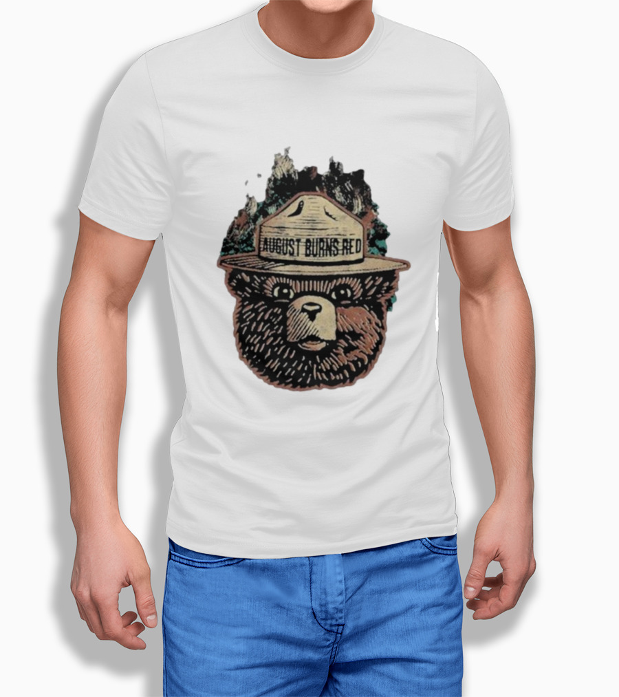 This T-Shirt features August Burns Red Smokey Bear print and is constructed from 100% ring-spun cotton fabric with a weight of 4.19 oz/yd² (142 g/m²). The fabric is pre-shrunk during manufacturing, a process intended to minimize dimensional changes after washing according to standard care instructions. Designed with a regular fit for everyday use, it incorporates double-needle stitching at key seams. Please refer to the size chart for detailed measurements.