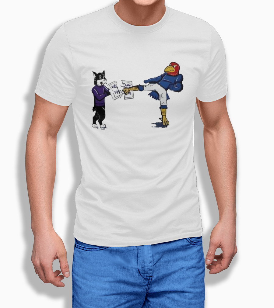 Kansas Jayhawk Mascot Kicking Wildcat We Own State T-Shirt