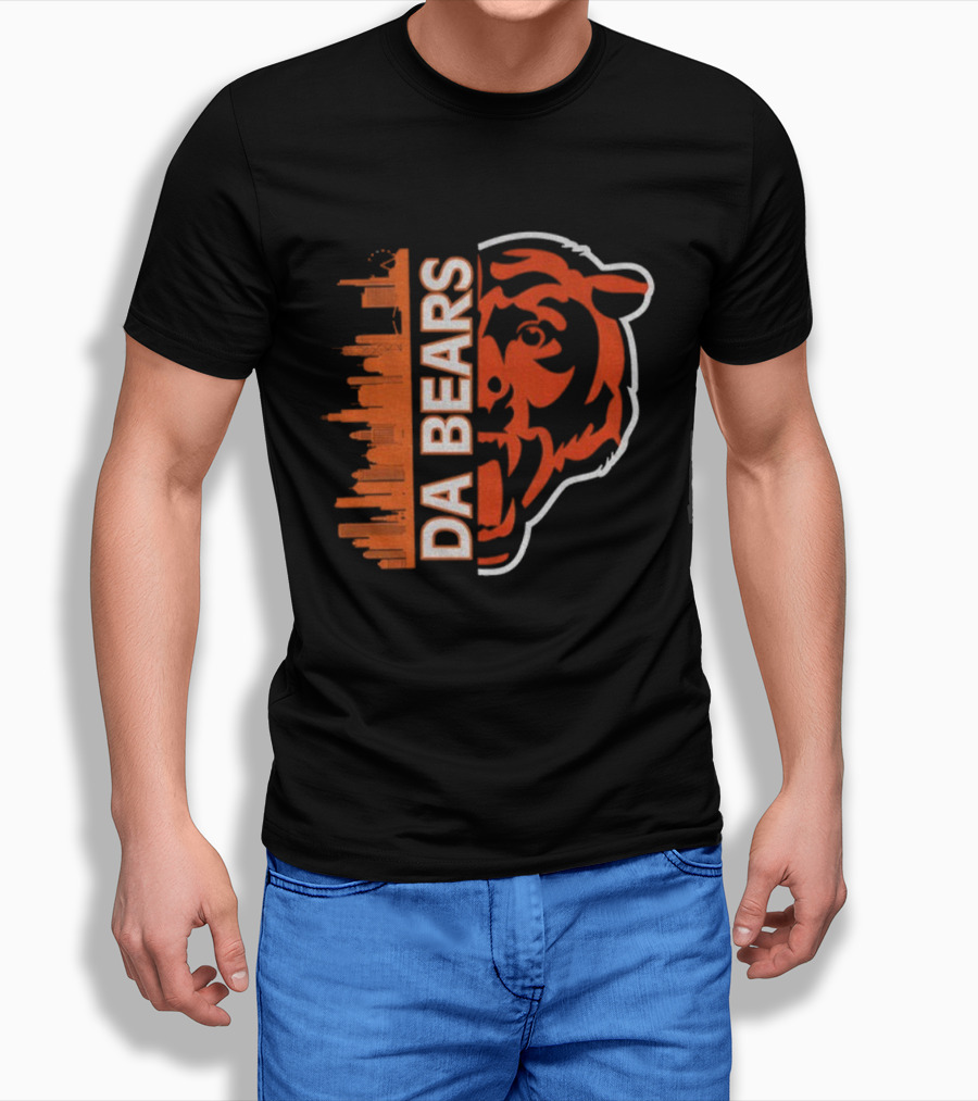 This T-Shirt features Da Bears Chicago Football City Skyline Bear Head print and is constructed from 100% ring-spun cotton fabric with a weight of 4.19 oz/yd² (142 g/m²). The fabric is pre-shrunk during manufacturing, a process intended to minimize dimensional changes after washing according to standard care instructions. Designed with a regular fit for everyday use, it incorporates double-needle stitching at key seams. Please refer to the size chart for detailed measurements.