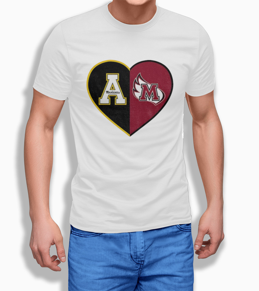 Appalachian State Mountaineers Meredith College Angels Split Heart Personalized T-Shirt