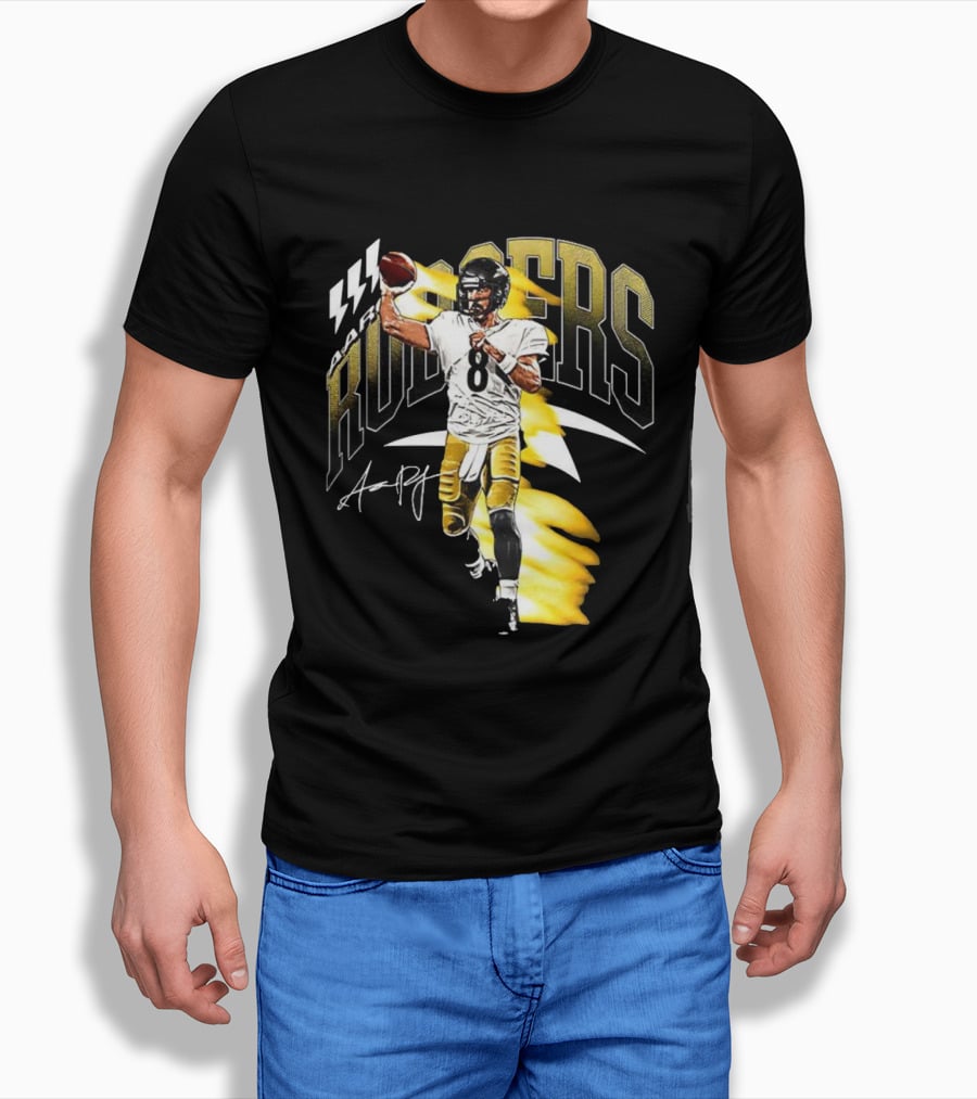 Aaron Rodgers Number 08 Pittsburgh Steelers Football Signature T-Shirt