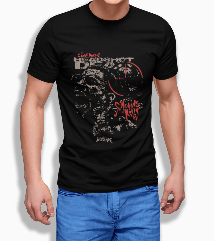 Carlos Prates Headshot Smoking Kills Full Violence Mood Red Markings T-Shirt
