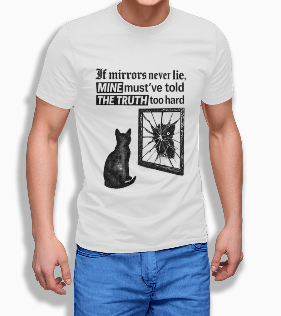 This T-Shirt features If Mirrors Never Lie Mine Must've Told the Truth Too Hard Black Cat Vintage print and is constructed from 100% ring-spun cotton fabric with a weight of 4.19 oz/yd² (142 g/m²). The fabric is pre-shrunk during manufacturing, a process intended to minimize dimensional changes after washing according to standard care instructions. Designed with a regular fit for everyday use, it incorporates double-needle stitching at key seams. Please refer to the size chart for detailed measurements.