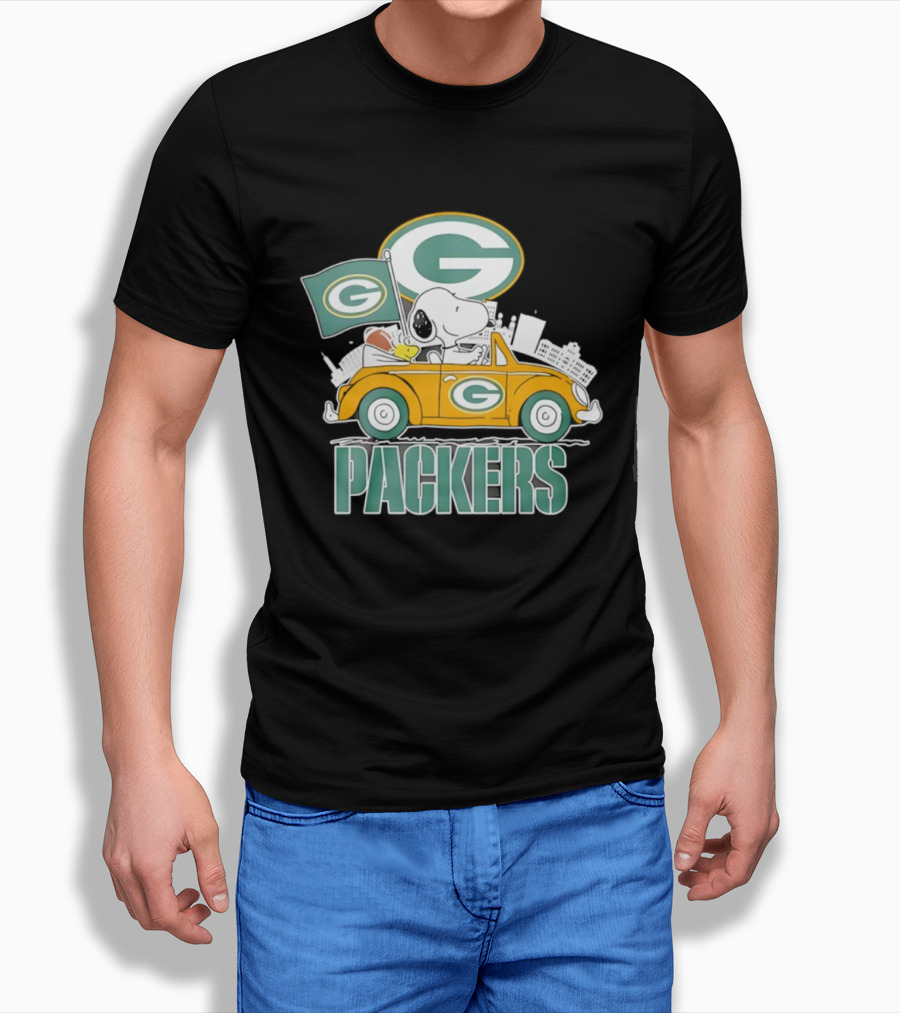 Green Bay Packers Snoopy Woodstock Driving Car Football Fan Art T-Shirt