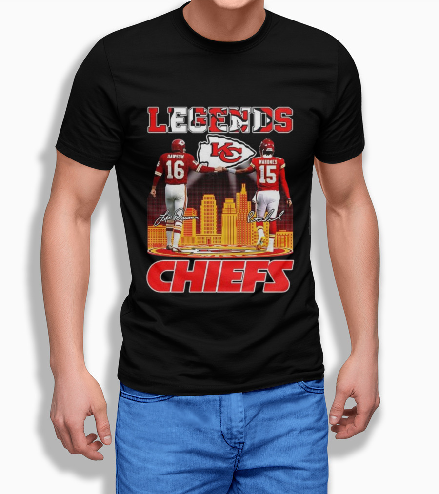 Len Dawson Patrick Mahomes Kansas City Chiefs Legends Signatures T-Shirt