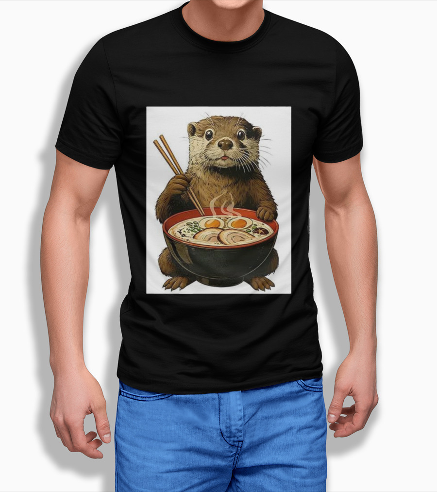 Cute Otter Enjoying Steaming Ramen With Chopsticks Illustration T-Shirt