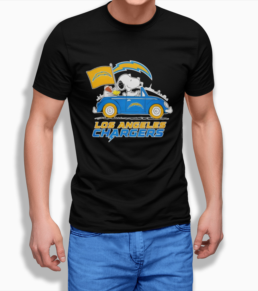 Los Angeles Chargers Snoopy Woodstock Driving Car Peanuts NFL Logo T-Shirt