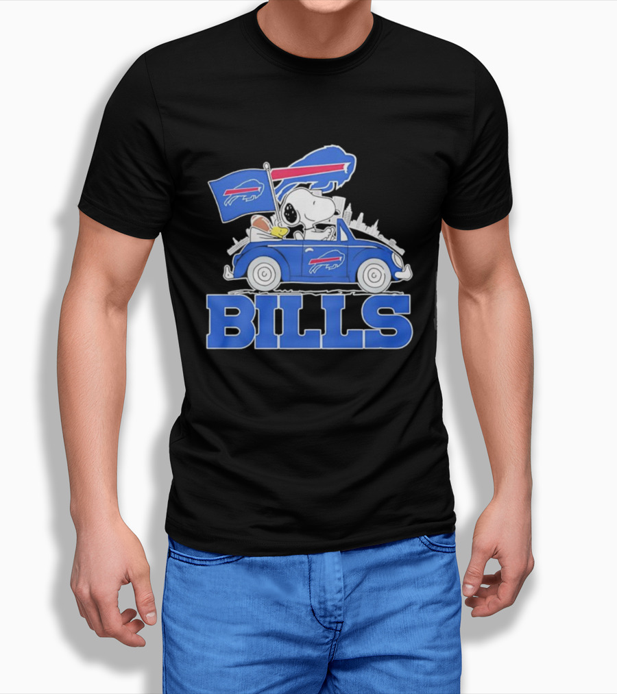 Peanuts Buffalo Bills Driving Car With Flag And Football T-Shirt