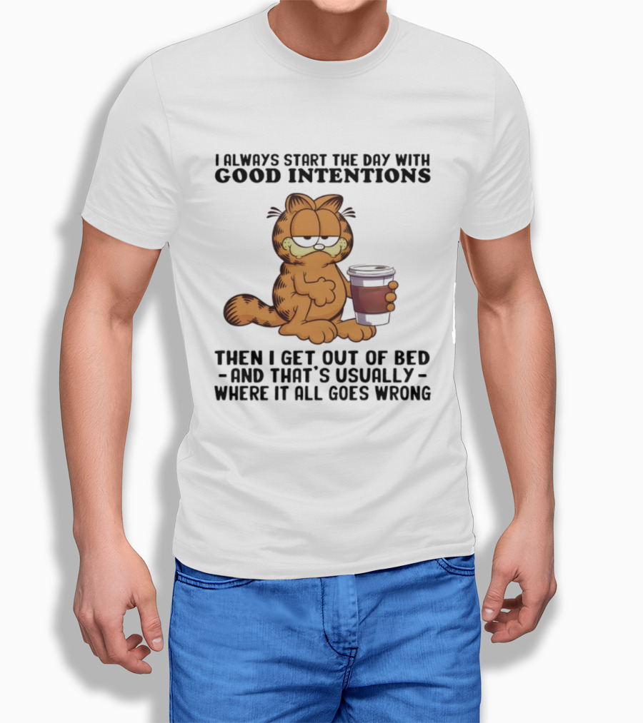 Garf I Always Start The Day With Good Intentions Then I Get Out Of Bed Where It All Goes Wrong T-Shirt