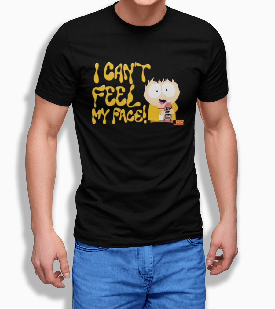 This T-Shirt features South Park I Can't Feel My Face Character Holding Drink print and is constructed from 100% ring-spun cotton fabric with a weight of 4.19 oz/yd² (142 g/m²). The fabric is pre-shrunk during manufacturing, a process intended to minimize dimensional changes after washing according to standard care instructions. Designed with a regular fit for everyday use, it incorporates double-needle stitching at key seams. Please refer to the size chart for detailed measurements.
