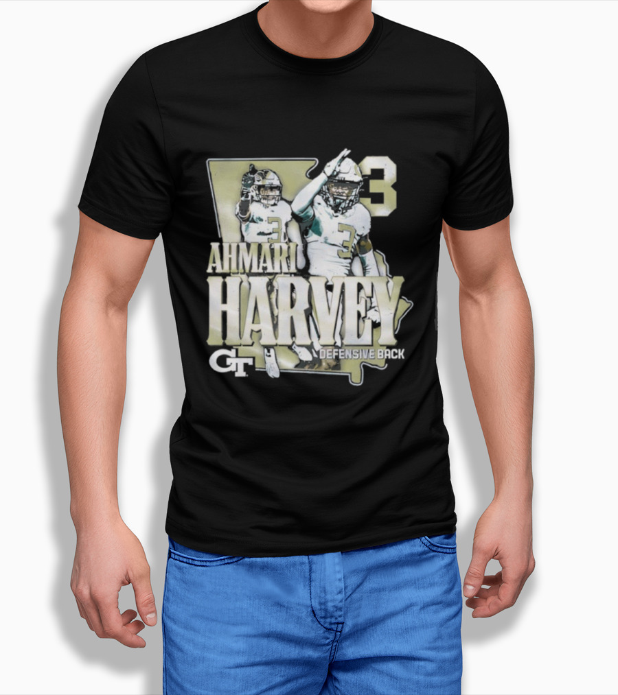 Georgia Tech Football Ahmari Harvey 3 Student Athlete Yellow Jackets T-Shirt
