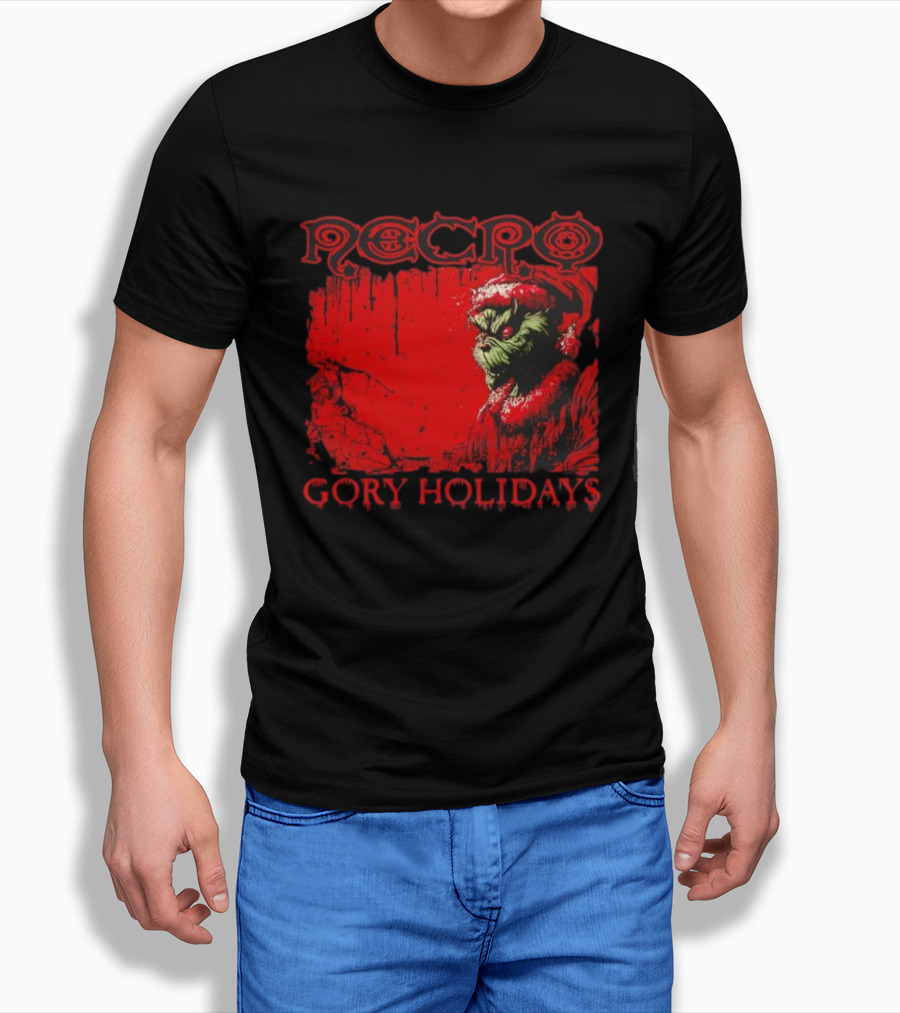 This T-Shirt features Necro Gory Holidays Grinch Santa Red Dripping Art print and is constructed from 100% ring-spun cotton fabric with a weight of 4.19 oz/yd² (142 g/m²). The fabric is pre-shrunk during manufacturing, a process intended to minimize dimensional changes after washing according to standard care instructions. Designed with a regular fit for everyday use, it incorporates double-needle stitching at key seams. Please refer to the size chart for detailed measurements.