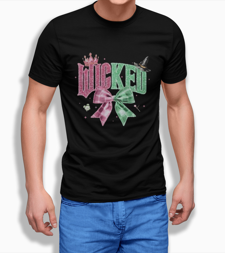 Wicked Musical Sparkle Pink Green Plaid Bow Witch Hat Princess Crown Halloween T-Shirt