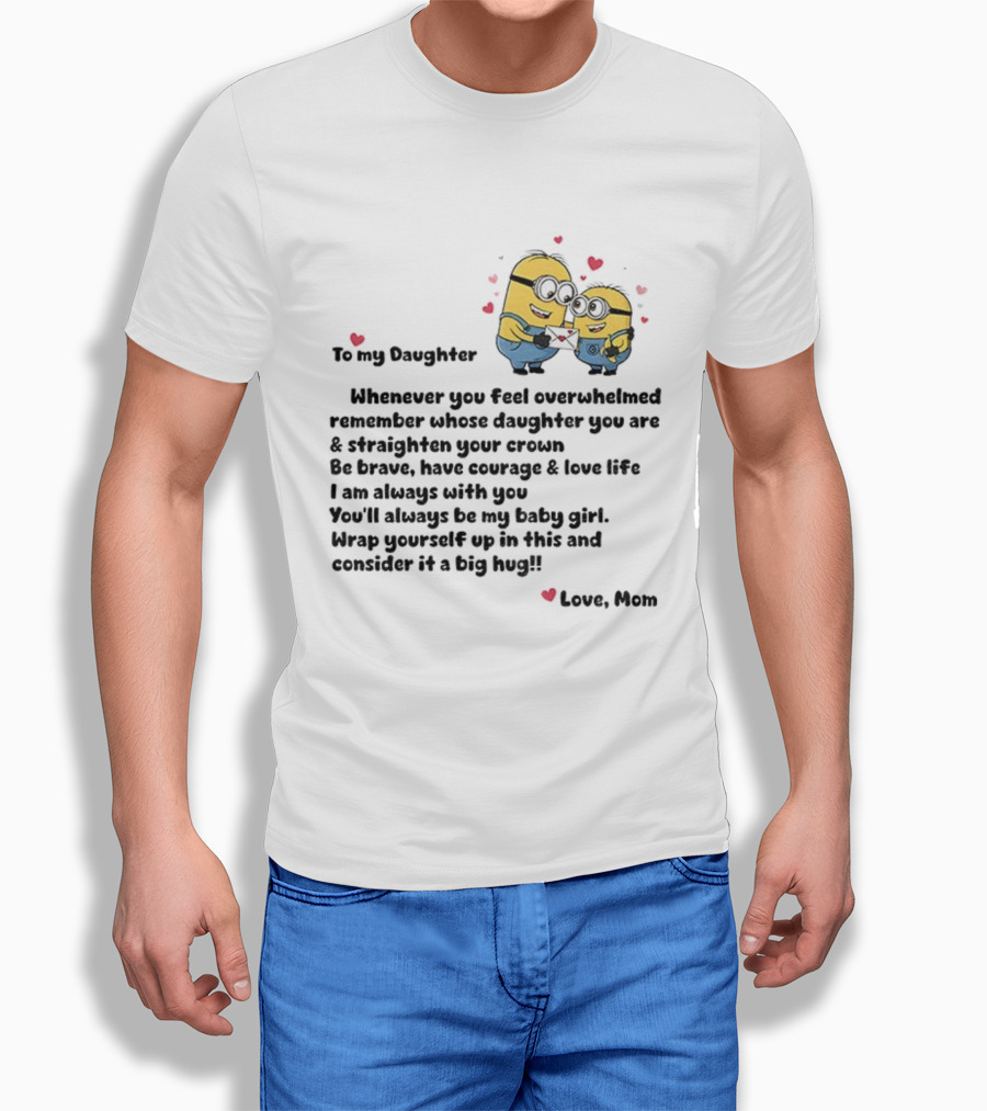 Minion To My Daughter Whenever You Feel Overwhelmed Remember Whose Daughter You Are And Straighten Your Crown Love Mom T-Shirt