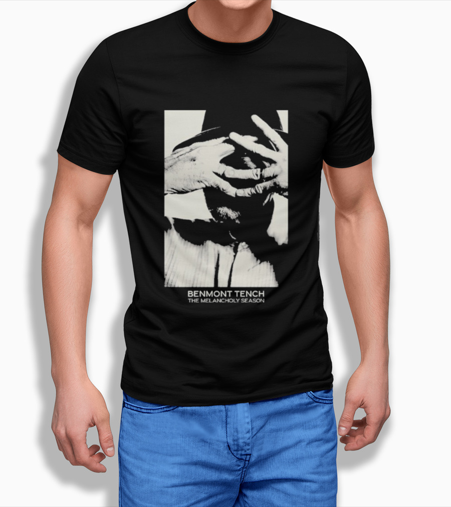 This T-Shirt features Benmont Tench Peeking Eye Hands The Melancholy Season print and is constructed from 100% ring-spun cotton fabric with a weight of 4.19 oz/yd² (142 g/m²). The fabric is pre-shrunk during manufacturing, a process intended to minimize dimensional changes after washing according to standard care instructions. Designed with a regular fit for everyday use, it incorporates double-needle stitching at key seams. Please refer to the size chart for detailed measurements.