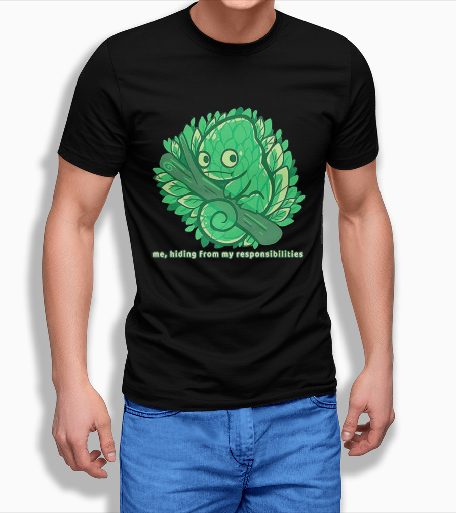 Me Hiding From My Responsibilities Chameleon Leaf Branch Camouflage T-Shirt