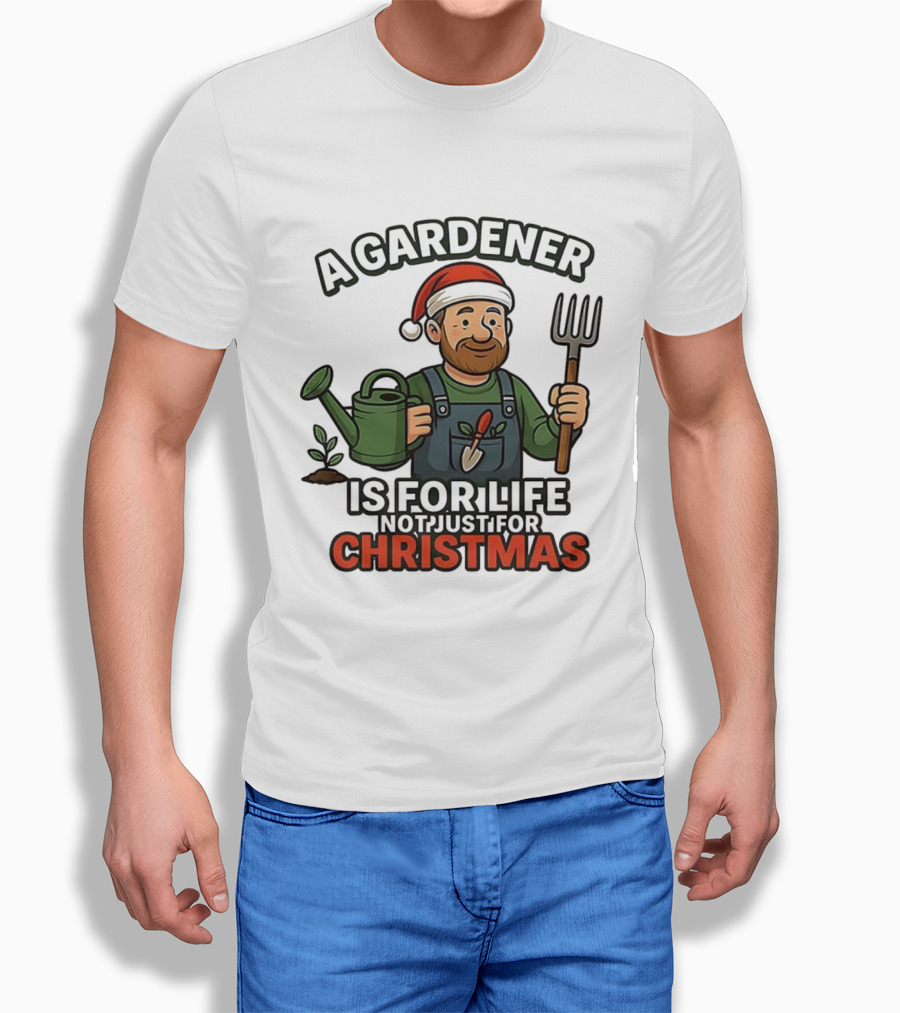 This T-Shirt features A Gardener Is for Life Not Just for Christmas Gardening Humor Santa Hat print and is constructed from 100% ring-spun cotton fabric with a weight of 4.19 oz/yd² (142 g/m²). The fabric is pre-shrunk during manufacturing, a process intended to minimize dimensional changes after washing according to standard care instructions. Designed with a regular fit for everyday use, it incorporates double-needle stitching at key seams. Please refer to the size chart for detailed measurements.