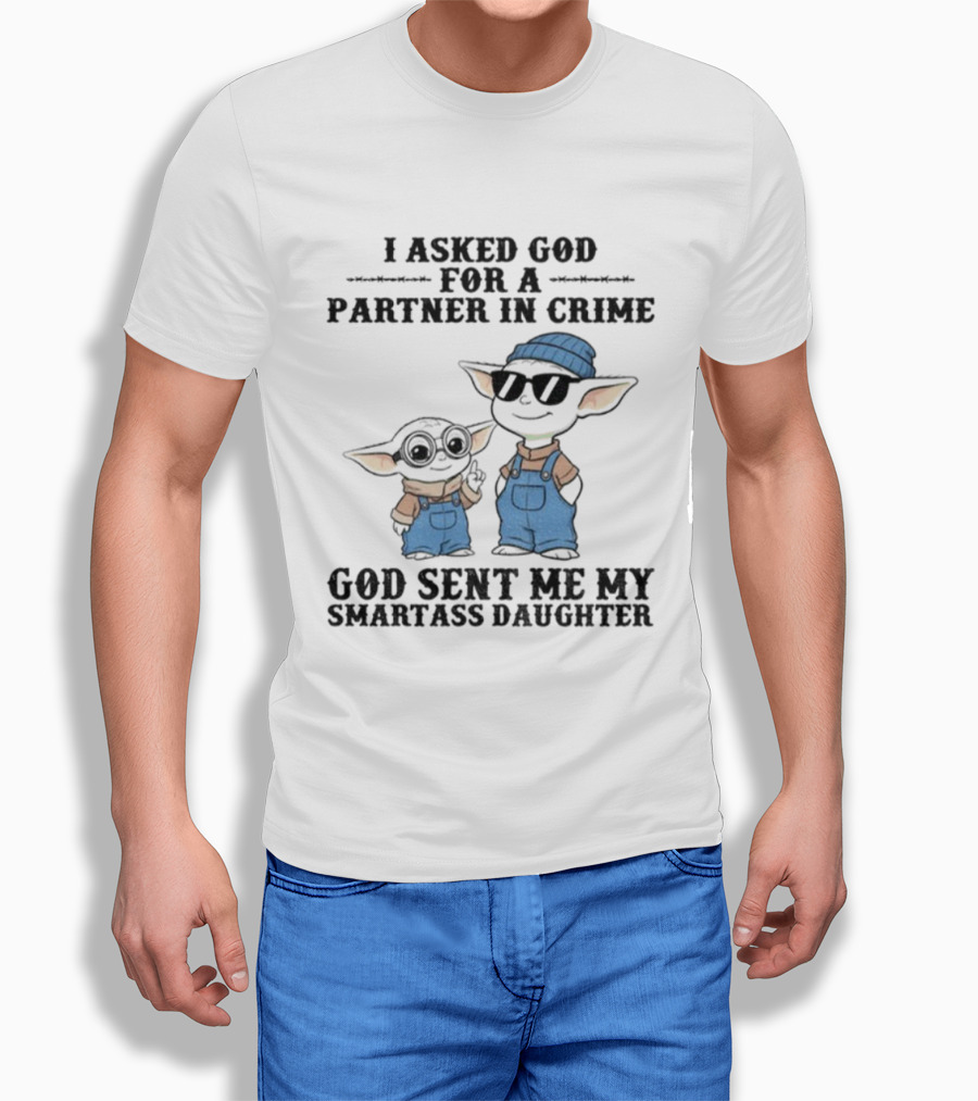 Baby Yoda I Asked God For A Partner In Crime God Sent Me My Smartass Daughter T-Shirt