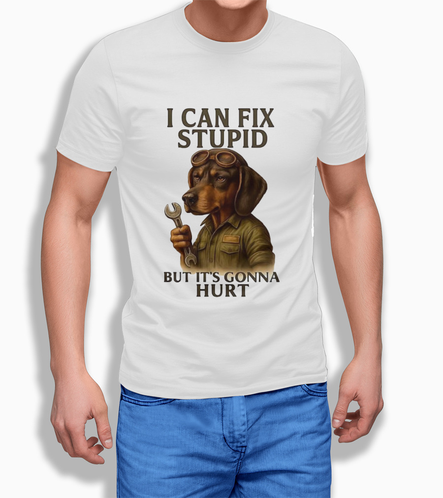 I Can Fix Stupid Dachshund Mechanic Humor It's Gonna Hurt T-Shirt
