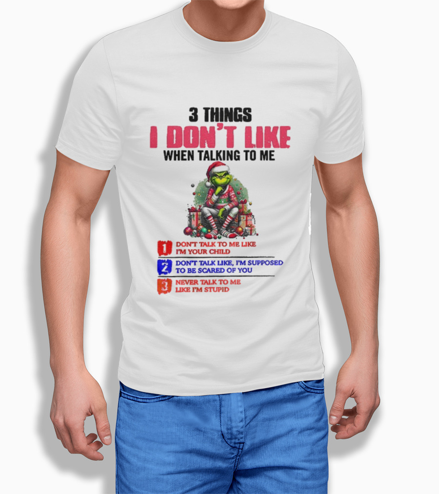 Grinch 3 Things I Don’t Like When Talking To Me Merry Christmas Don't Talk To Me Like I’m Your Child T-Shirt