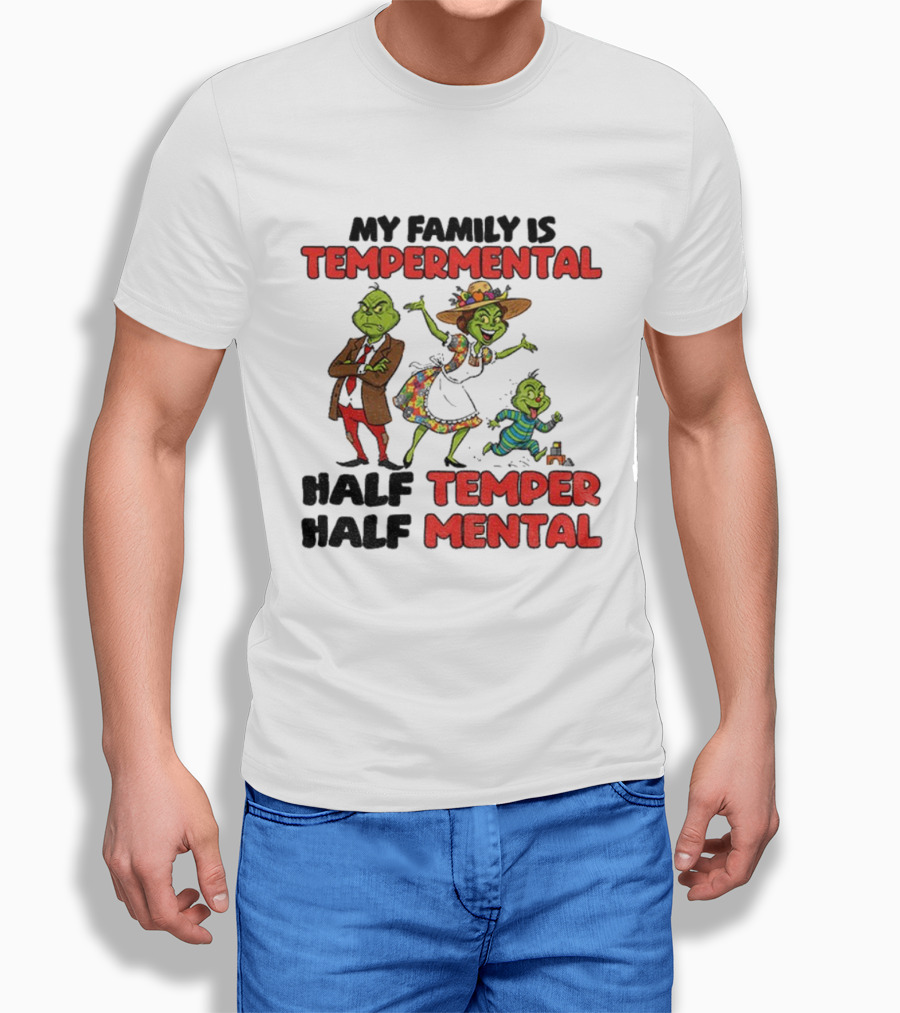 Grinch Family Christmas Temperamental Half Temper Half Mental Santa Hat T-Shirt