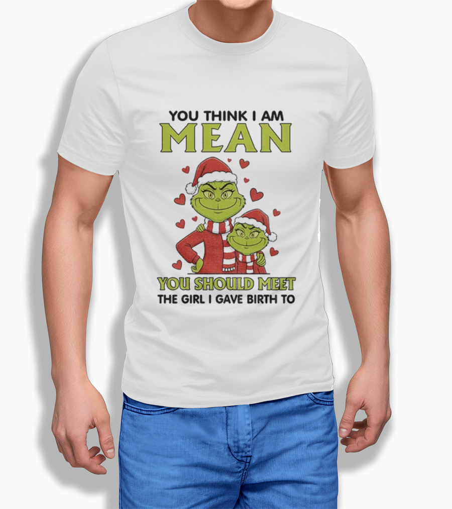 You Think I Am Mean You Should Meet The Girl I Gave Birth To Grinch Santa Hat T-Shirt