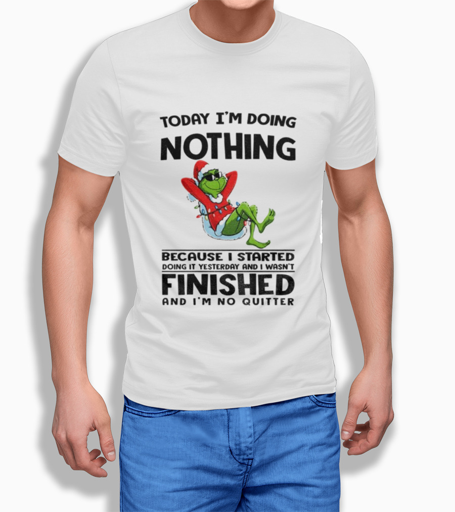 Grinch Santa Doing Nothing Finished No Quitter Merry Christmas T-Shirt