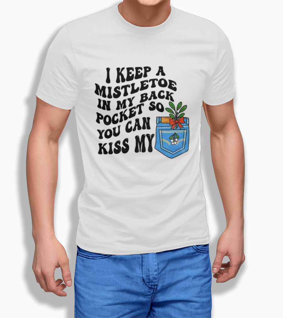 I Keep A Mistletoe In My Back Pocket So You Can Kiss My Christmas Mistletoe Pocket Humor T-Shirt