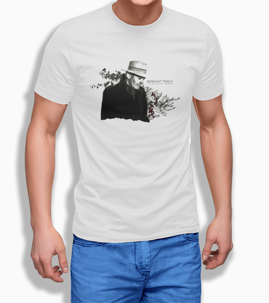This T-Shirt features Benmont Tench The Melancholy Season Floral Style Fedora Portrait print and is constructed from 100% ring-spun cotton fabric with a weight of 4.19 oz/yd² (142 g/m²). The fabric is pre-shrunk during manufacturing, a process intended to minimize dimensional changes after washing according to standard care instructions. Designed with a regular fit for everyday use, it incorporates double-needle stitching at key seams. Please refer to the size chart for detailed measurements.