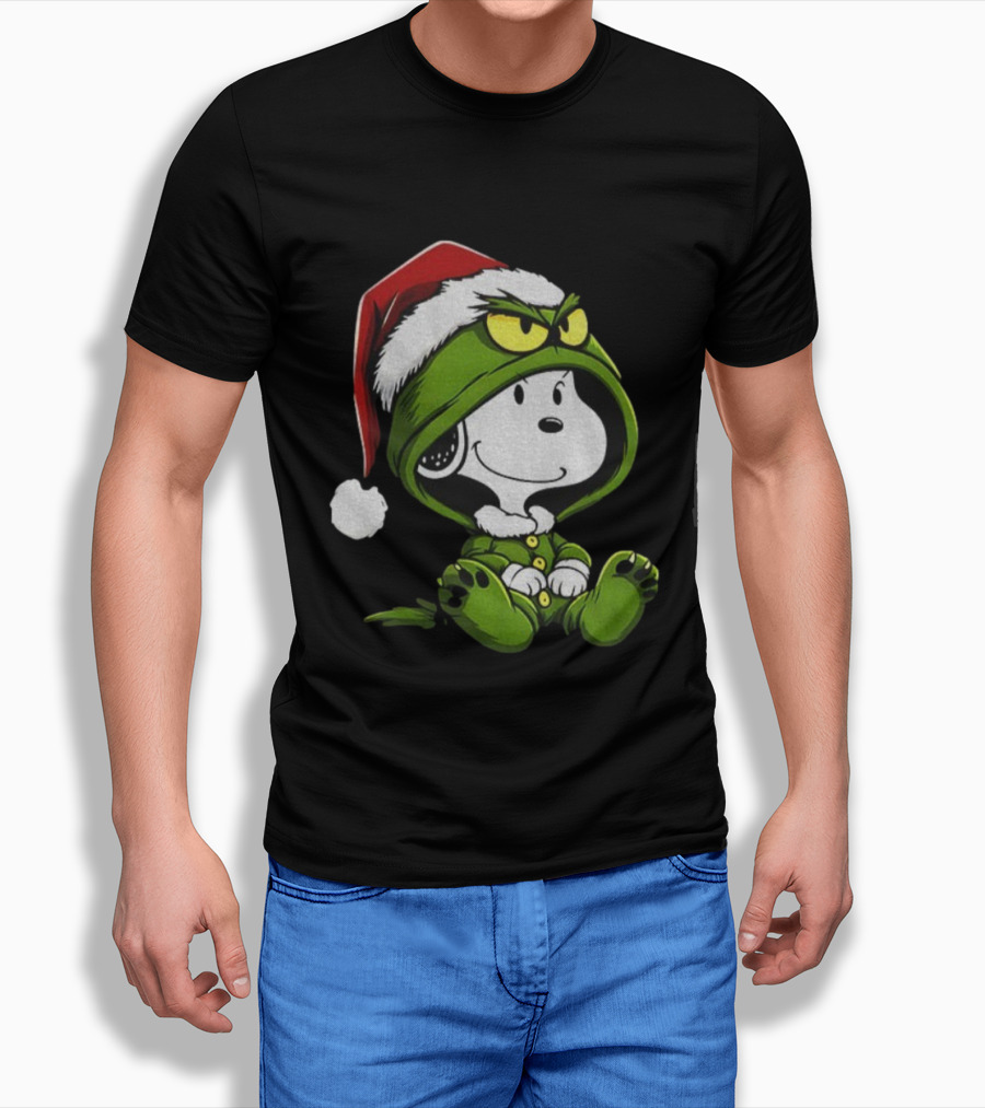 Snoopy Grinch Santa Hat Cute Cartoon Merry Christmas T-Shirt