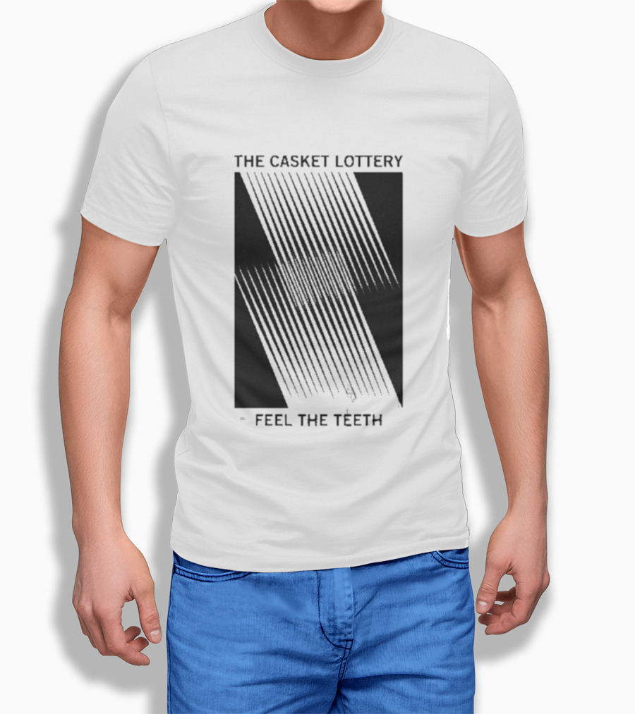 This T-Shirt features The Casket Lottery Feel The Teeth Tour Striped Graphic Tee print and is constructed from 100% ring-spun cotton fabric with a weight of 4.19 oz/yd² (142 g/m²). The fabric is pre-shrunk during manufacturing, a process intended to minimize dimensional changes after washing according to standard care instructions. Designed with a regular fit for everyday use, it incorporates double-needle stitching at key seams. Please refer to the size chart for detailed measurements.