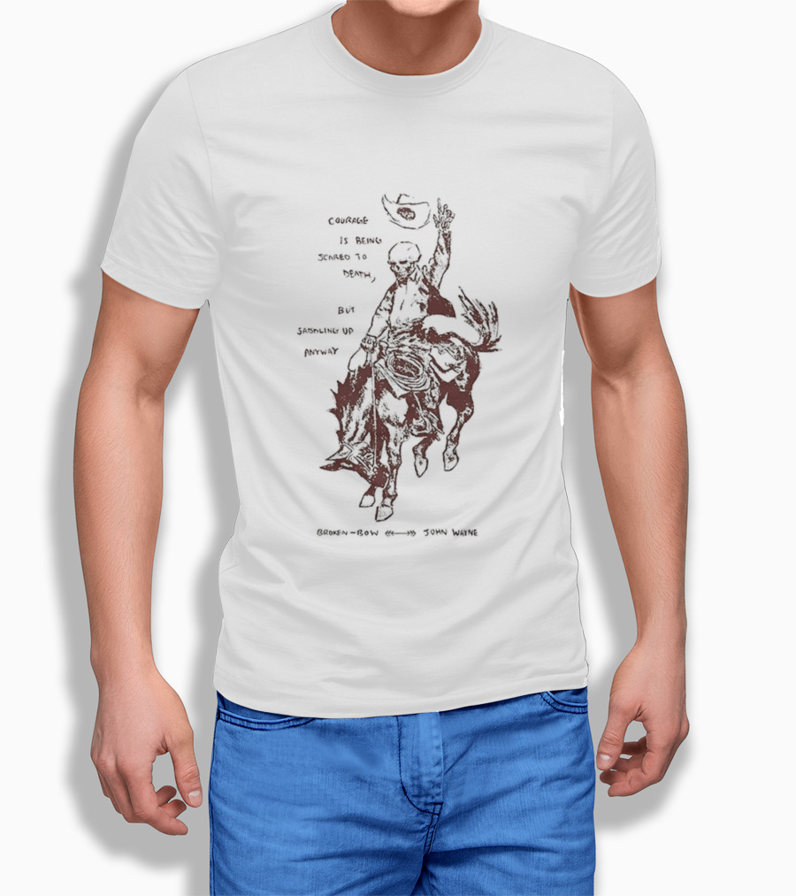 Courage Is Being Scared To Death But Saddling Up Anyway Broken Bow John Wayne Sketch Cowboy Riding Horse T-Shirt