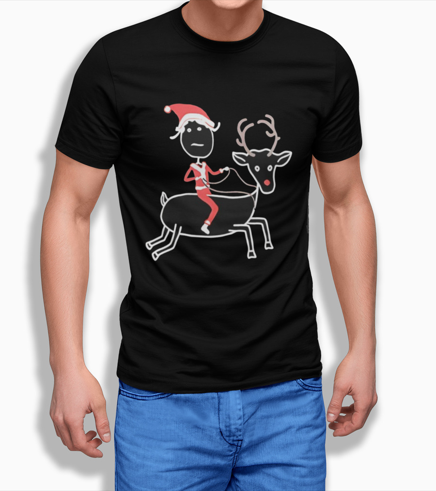 Rhenna Reindeer Santa Claus Christmas Stick Figure Art T-Shirt