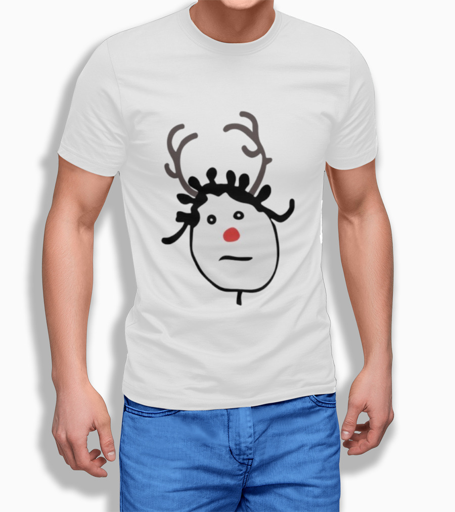 Rhenna Holiday Reindeer Drawing Red Nose Antlers T-Shirt