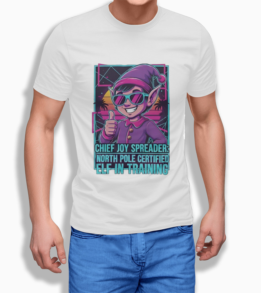 North Pole Certified Elf-in-Training Chief Joy Spreader Retro Style T-Shirt