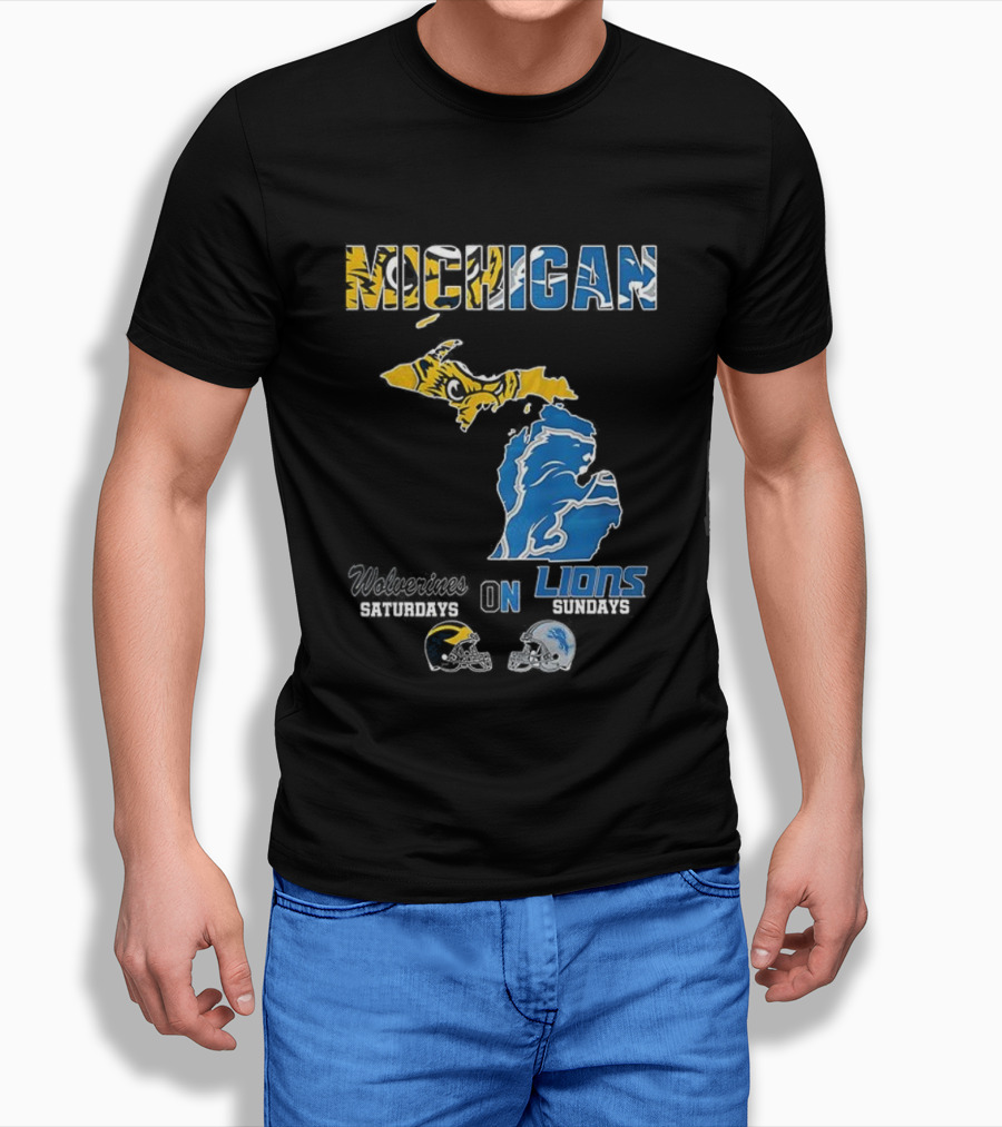 Michigan Wolverines Saturdays Detroit Lions Sundays Map T-Shirt