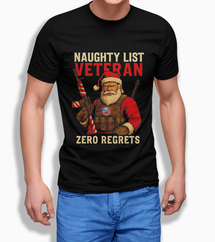 Naughty List Veteran Santa Tactical Zero Regrets T-Shirt