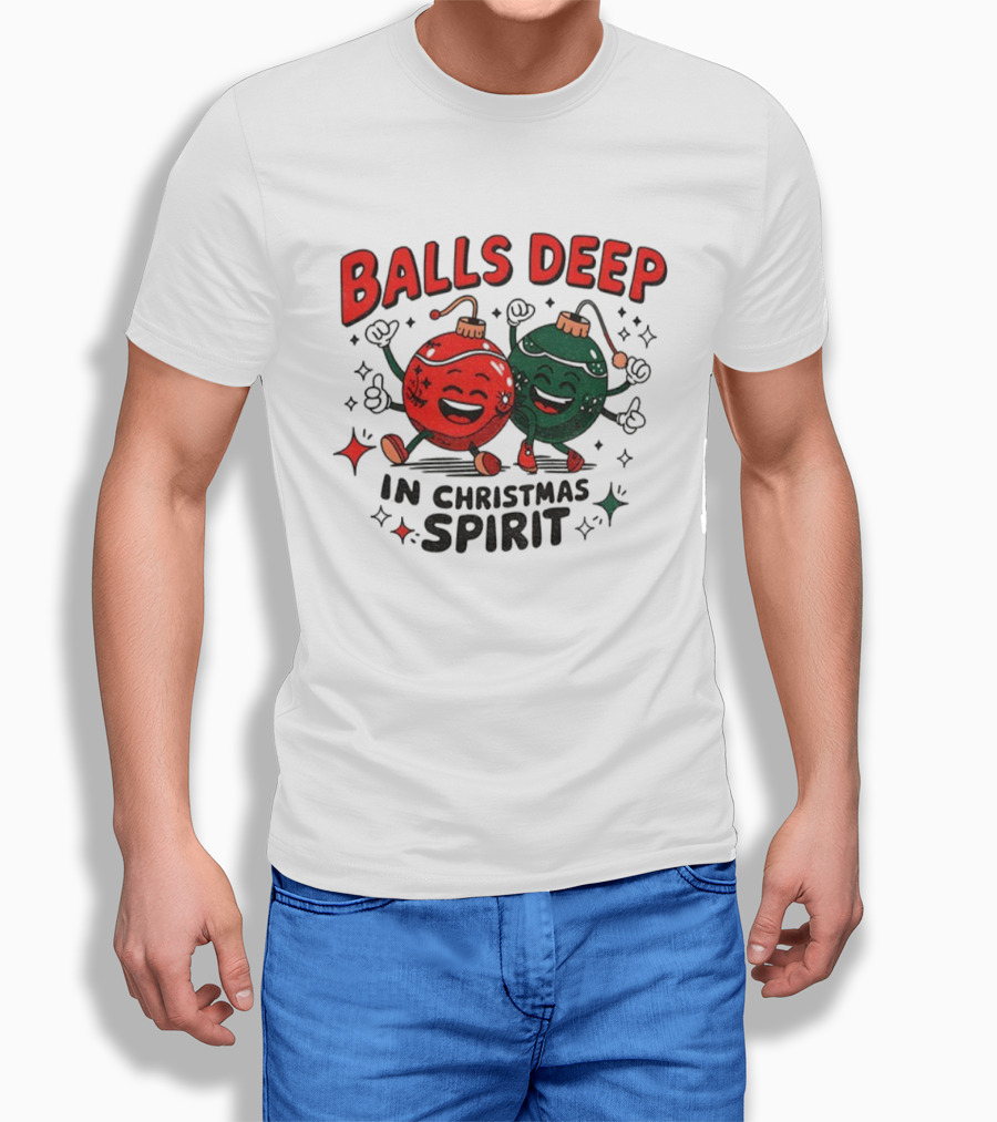 Balls Deep In Christmas Spirit Baubles Merry Christmas T-Shirt