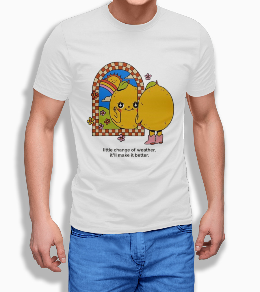 This T-Shirt features Maren Morris Lemon Little Change of Weather Sunflower Mirror Boots print and is constructed from 100% ring-spun cotton fabric with a weight of 4.19 oz/yd² (142 g/m²). The fabric is pre-shrunk during manufacturing, a process intended to minimize dimensional changes after washing according to standard care instructions. Designed with a regular fit for everyday use, it incorporates double-needle stitching at key seams. Please refer to the size chart for detailed measurements.
