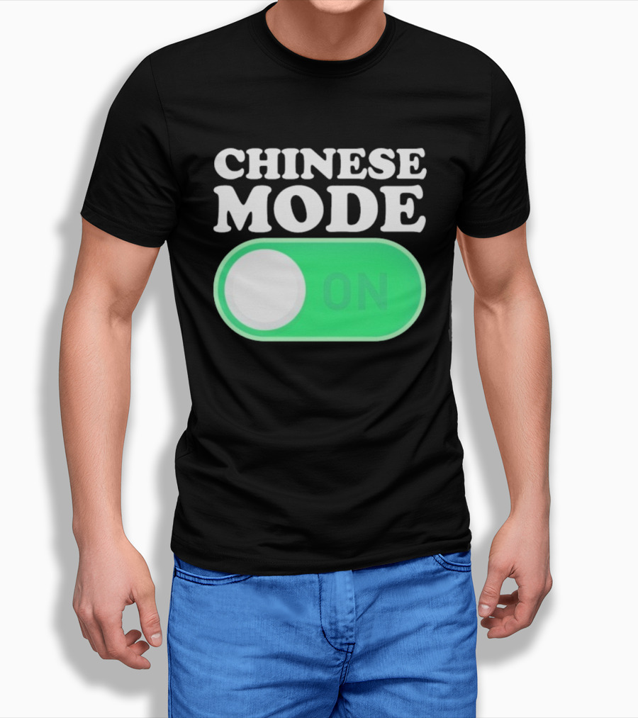 This T-Shirt features CHINESE MODE ON Switch Symbol print and is constructed from 100% ring-spun cotton fabric with a weight of 4.19 oz/yd² (142 g/m²). The fabric is pre-shrunk during manufacturing, a process intended to minimize dimensional changes after washing according to standard care instructions. Designed with a regular fit for everyday use, it incorporates double-needle stitching at key seams. Please refer to the size chart for detailed measurements.