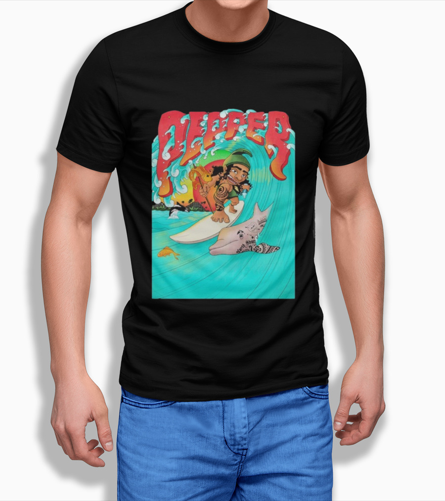 Pepper Surfer Riding Waves With Tattooed Dolphin T-Shirt