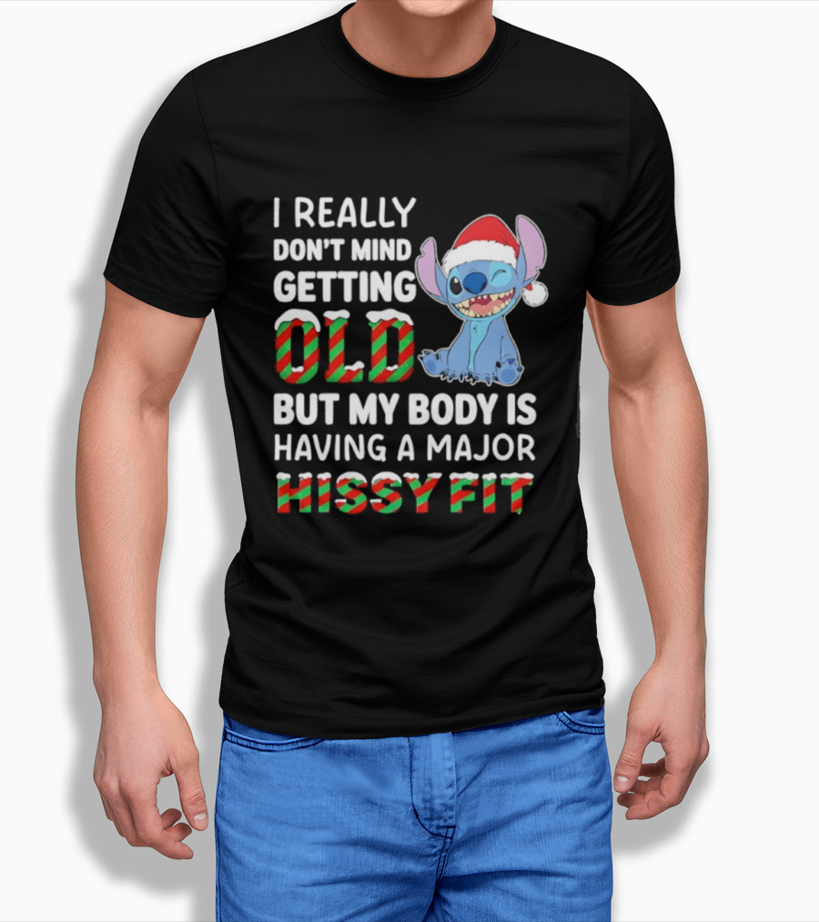 I Really Don't Mind Getting Old But My Body Is Having A Major Hissy Fit Stitch Santa Hat T-Shirt