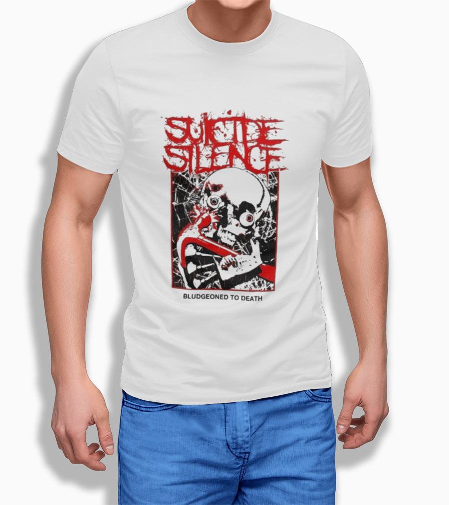 This T-Shirt features Suicide Silence Bludgeoned To Death Skull and Crowbar Design print and is constructed from 100% ring-spun cotton fabric with a weight of 4.19 oz/yd² (142 g/m²). The fabric is pre-shrunk during manufacturing, a process intended to minimize dimensional changes after washing according to standard care instructions. Designed with a regular fit for everyday use, it incorporates double-needle stitching at key seams. Please refer to the size chart for detailed measurements.