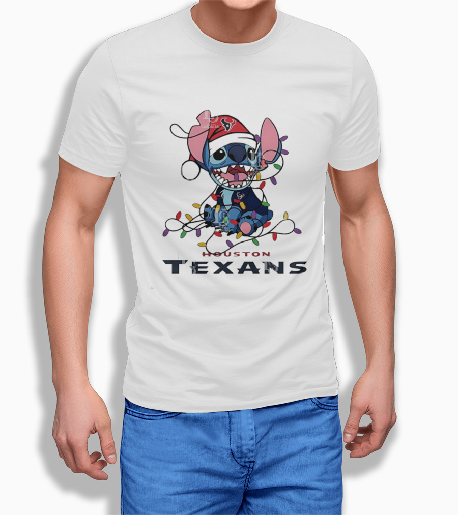 Houston Texans Stitch Christmas Lights Ornament Anime Fan Art T-Shirt