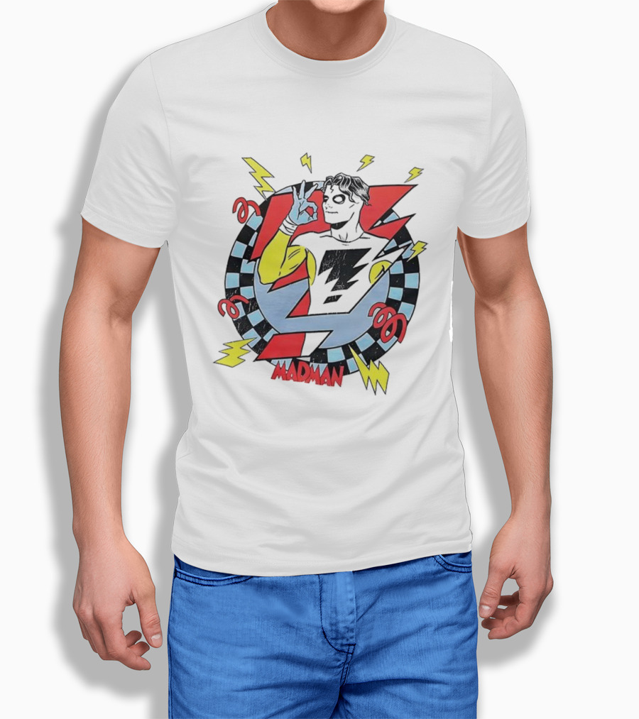Madman Mike Allred Comic Checkerboard Lightning Bolt Character T-Shirt