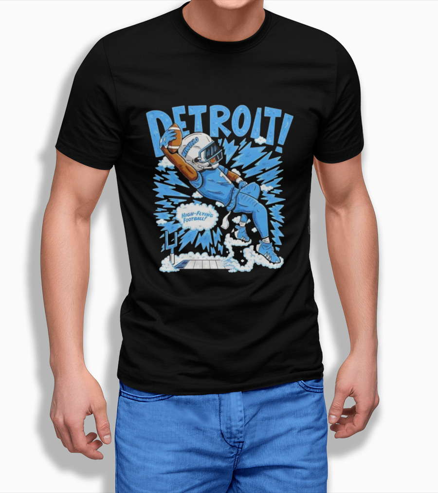 This T-Shirt features Detroit Lions Jameson Williams High-Flying Football Kiwiclop Collection print and is constructed from 100% ring-spun cotton fabric with a weight of 4.19 oz/yd² (142 g/m²). The fabric is pre-shrunk during manufacturing, a process intended to minimize dimensional changes after washing according to standard care instructions. Designed with a regular fit for everyday use, it incorporates double-needle stitching at key seams. Please refer to the size chart for detailed measurements.