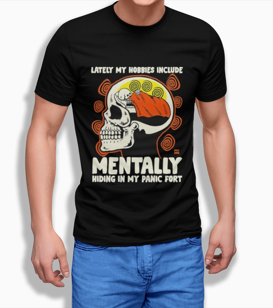 Lately My Hobbies Include Mentally Hiding In My Panic Fort Skull T-Shirt
